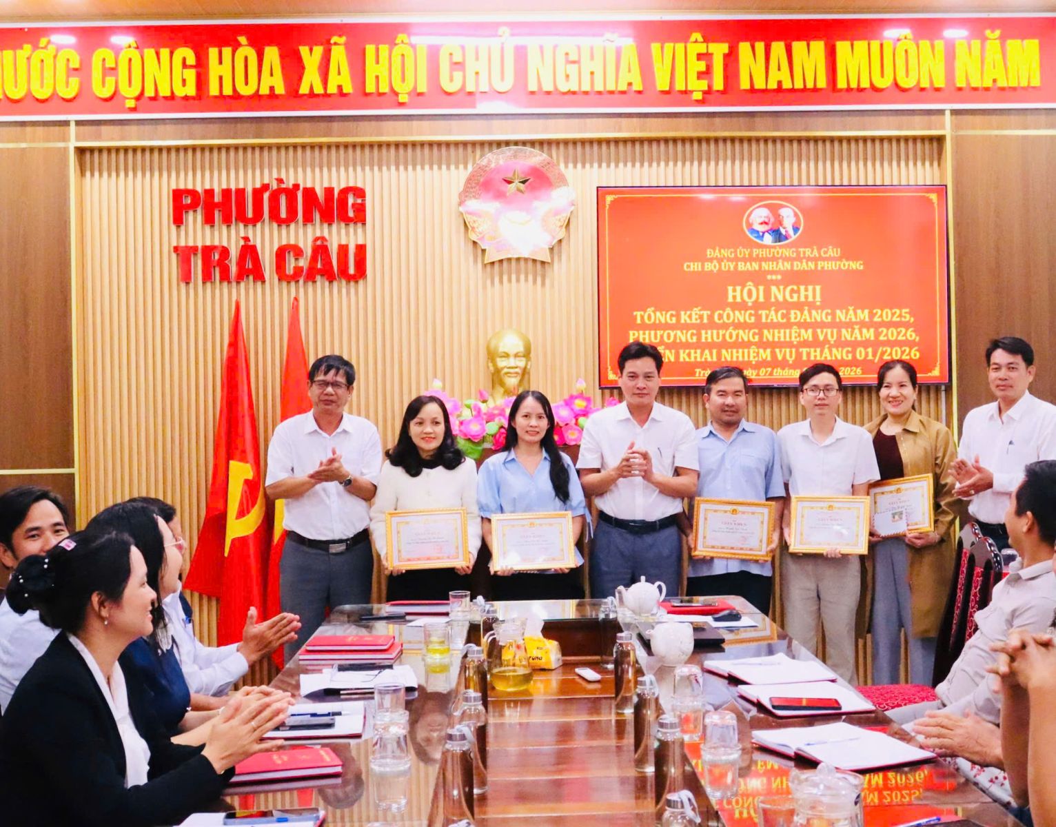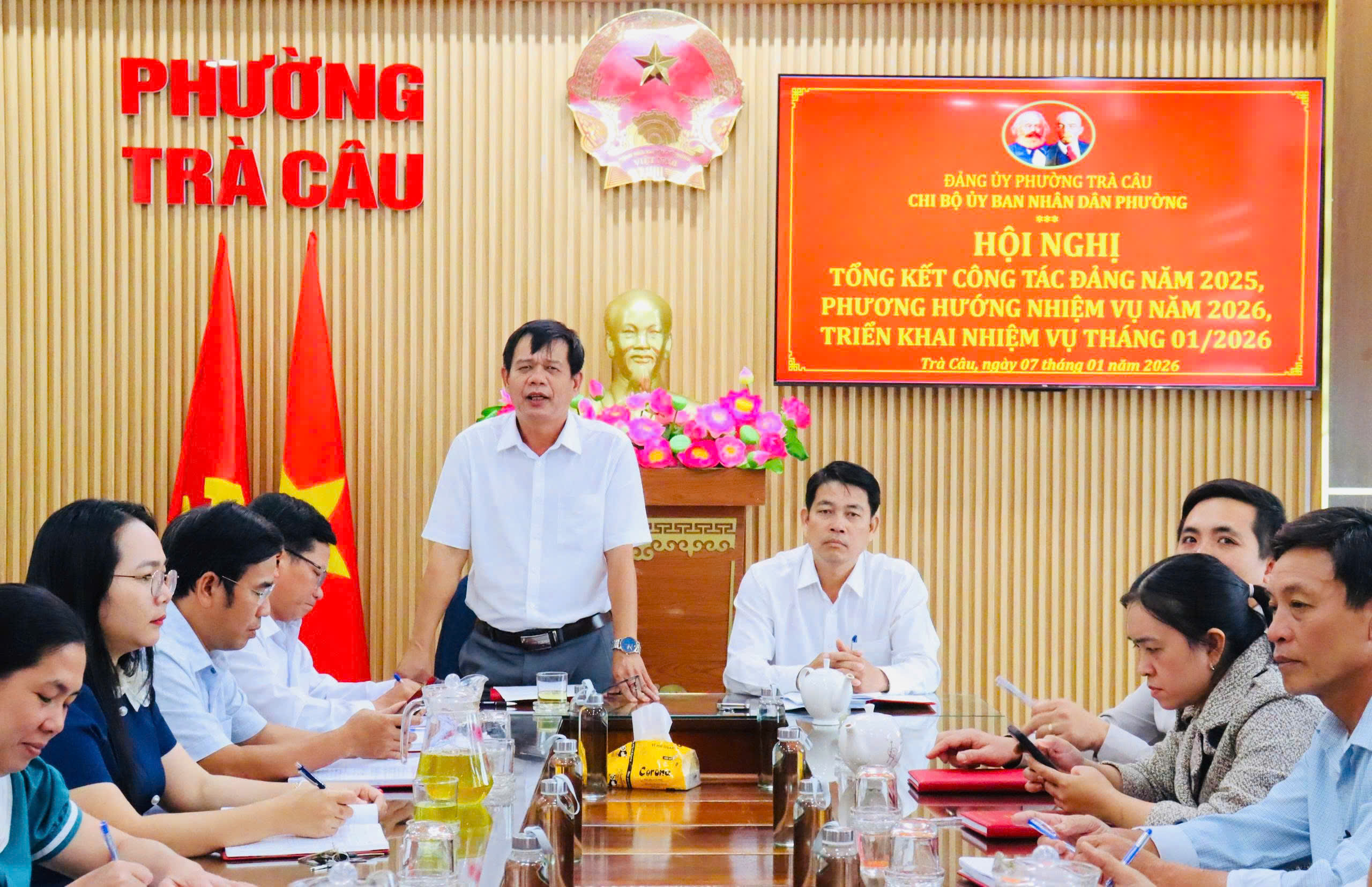 Chiều ngày 07/01/2026, Chi bộ UBND phường Trà Câu tổ chức Hội nghị tổng kết công tác Đảng năm 2025, phương hướng nhiệm vụ năm 2026 và triển khai nhiệm vụ tháng 01 năm 2026. Hội nghị do đồng chí Nguyễn Thế Vĩnh – Bí thư Chi bộ, Phó Chủ tịch UBND phường và đồng chí Nguyễn Văn Minh – Phó Bí thư Chi bộ, Phó Chủ tịch UBND phường đồng chủ trì.