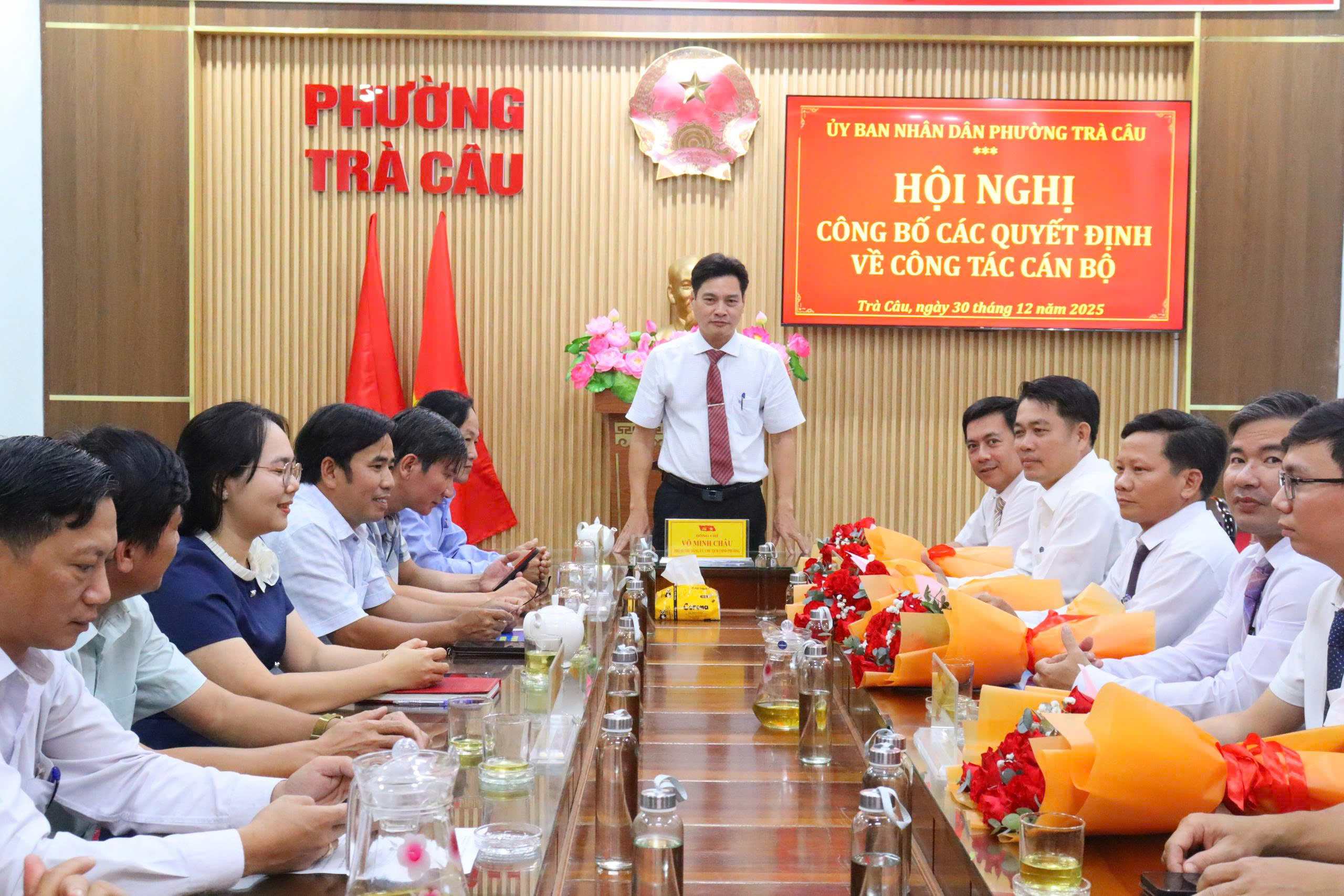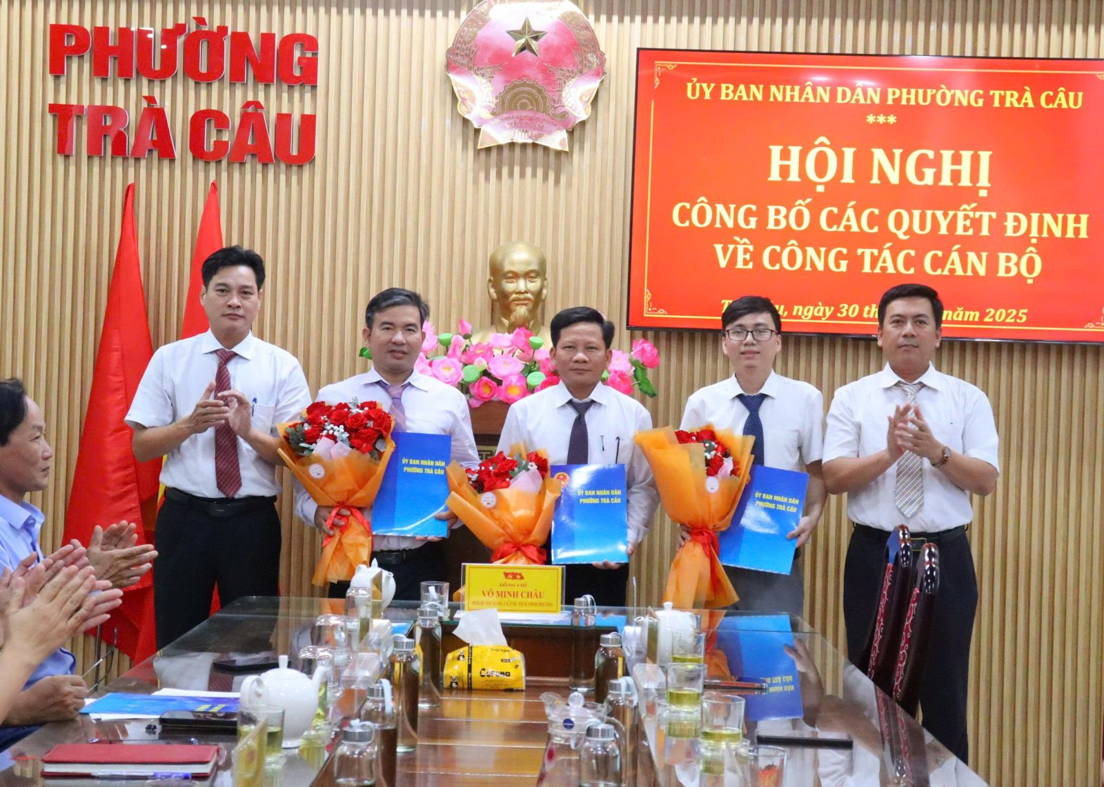 Công bố quyết định về việc bổ nhiệm ông Nguyễn Văn Đức giữ chức Giám đốc Trung tâm Phục vụ hành chính công phường Trà Câu trong thời hạn 05 năm, kể từ ngày 31/12/2025 đến ngày 30/12/2030; Quyết định bổ nhiệm ông Lương Văn Thuận giữ chức Phó Chánh Văn phòng HĐND và UBND phường trong thời hạn 05 năm, kể từ ngày 31/12/2025 đến ngày 30/12/2030; Quyết định bổ nhiệm ông Huỳnh Tấn Thịnh giữ chức Phó trưởng Phòng Kinh tế, Hạ tầng và Đô thị phường Trà Câu trong thời hạn 05 năm, kể từ ngày 31/12/2025 đến ngày 30/12/2030.