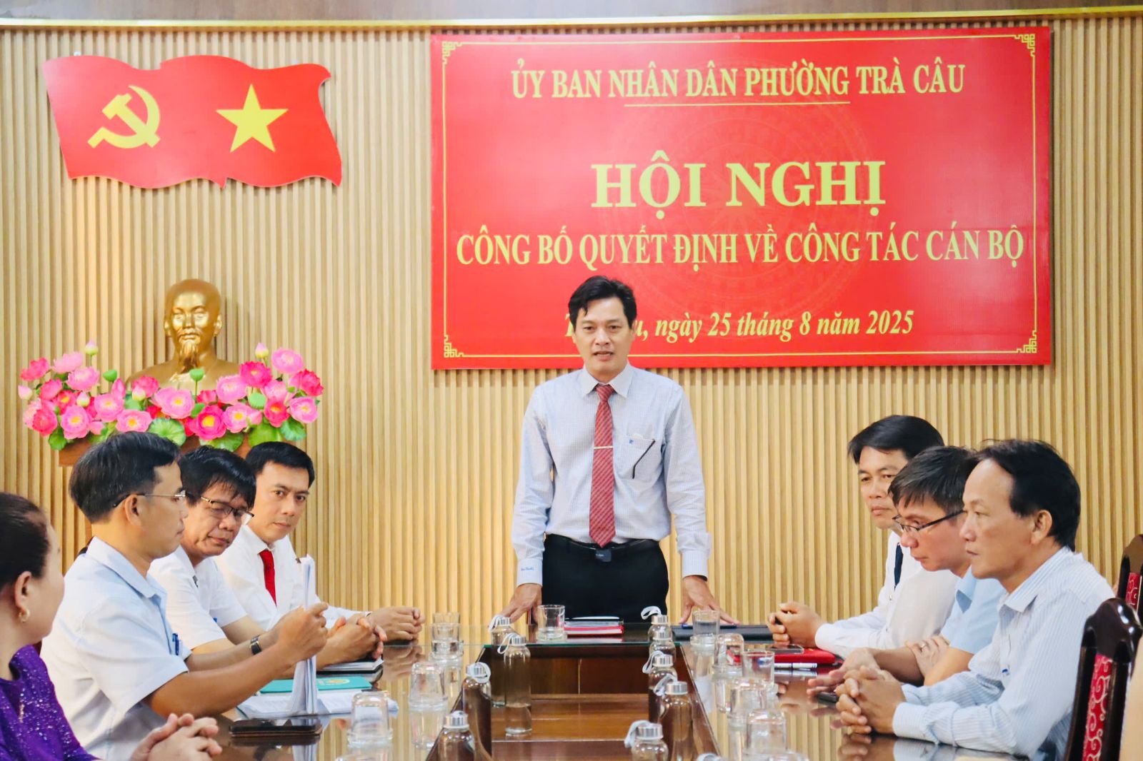 Chiều ngày 25/8/2025, UBND phường Trà Câu tổ chức hội nghị công bố quyết định về công tác cán bộ lãnh đạo, quản lý các trường học. Đồng chí Võ Minh Châu - Chủ tịch UBND phường chủ trì hội nghị.