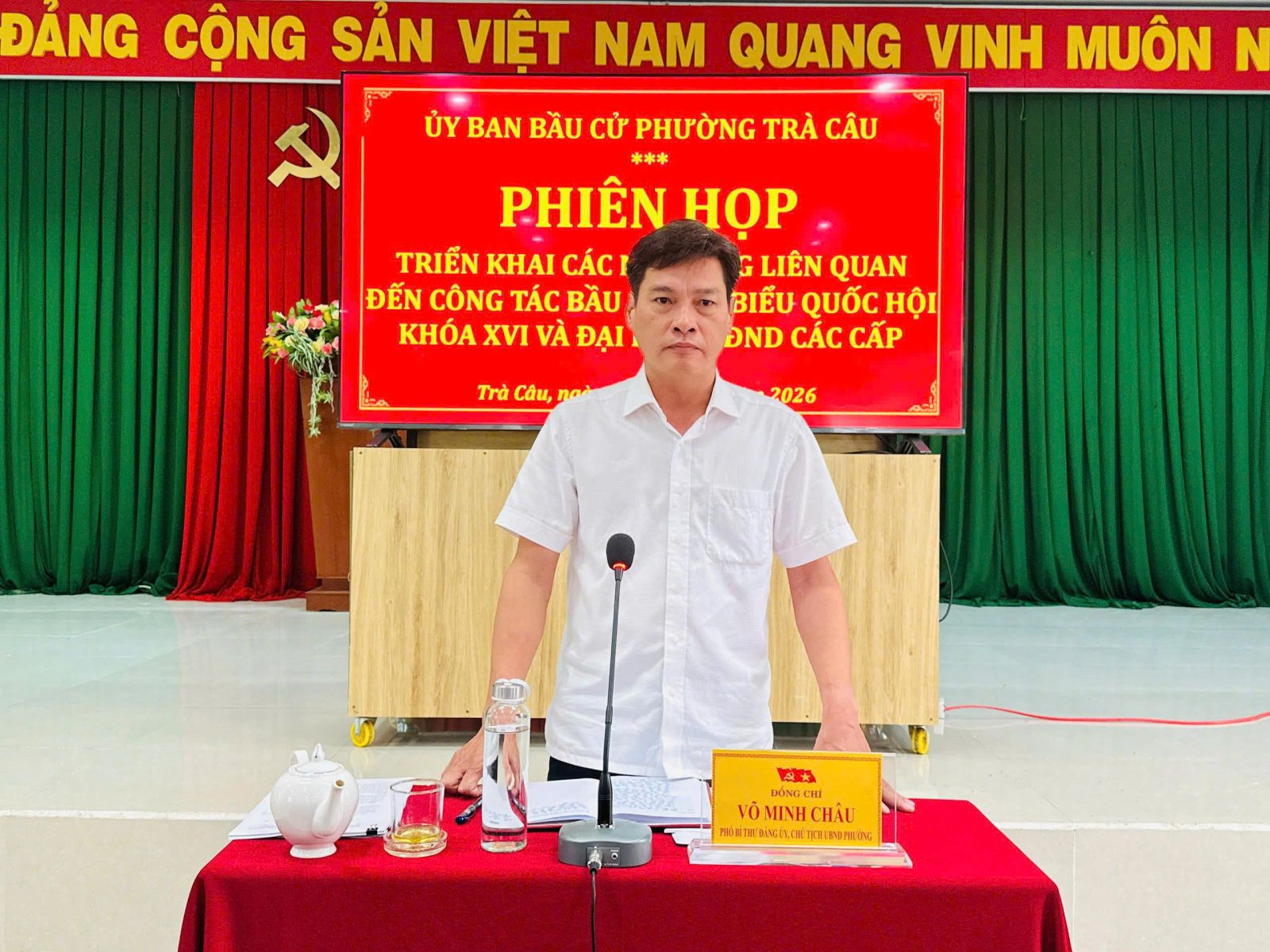 Sáng ngày 05/01/2026, Ủy ban bầu cử phường Trà Câu tổ chức phiên họp triển khai các nội dung liên quan đến công tác bầu cử đại biểu Quốc hội khóa XVI và Hội đồng nhân dân các cấp, nhiệm kỳ 2026-2031. Đồng chí Võ Minh Châu – Phó Bí thư Đảng uỷ, Chủ tịch UBND phường, Chủ tịch Uỷ ban bầu cử chủ trì phiên họp.