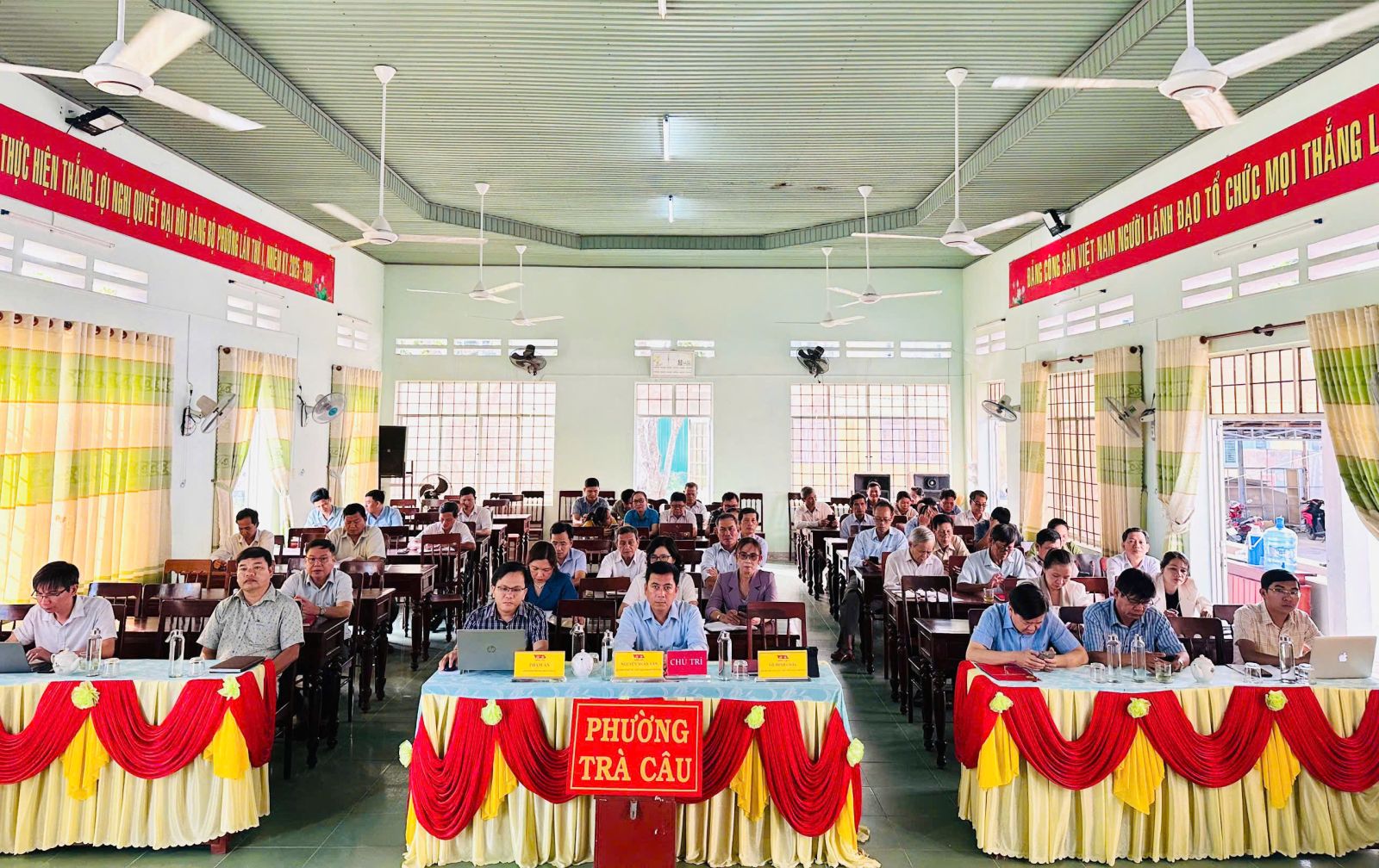 Tại điểm cầu của phường Trà Câu, có các đồng chí: Nguyễn Xuân Văn - Bí thư Đảng uỷ, Chủ tịch HĐND phường; Phạm Ân - Phó Bí thư Thường trực Đảng uỷ; Nguyễn Thị Diễm Kiều - Chủ tịch UBMTTQVN phường; các đồng chí UVBTV Đảng ủy; các đồng chí lãnh đạo các cơ quan chuyên trách tham mưu giúp việc Đảng ủy phường; các phòng, ban chuyên môn HĐND, UBND phường; các thành viên của Ban Chỉ đạo bầu cử phường; các thành viên của Ủy ban bầu cử đại biểu HĐND phường và Bí thư Chi bộ, Tổ trưởng, Trưởng Ban công tác mặt trận các tổ dân phố trên địa bàn phường.