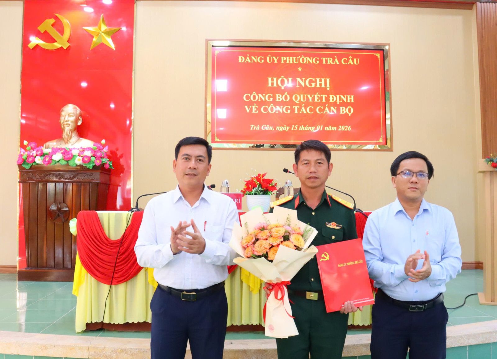 Tại hội nghị, Trưởng Ban Xây dựng Đảng đã công bố Quyết định số 437-QĐ/TU ngày 14/01/2026 của Tỉnh uỷ Quảng Ngãi chỉ định đồng chí Nguyễn Tấn Ân, Chỉ huy trưởng Ban Chỉ huy Quân sự phường Trà Câu tham gia Ban Chấp hành Đảng bộ, Ban Thường vụ Đảng ủy phường Trà Câu, nhiệm kỳ 2025 – 2030.